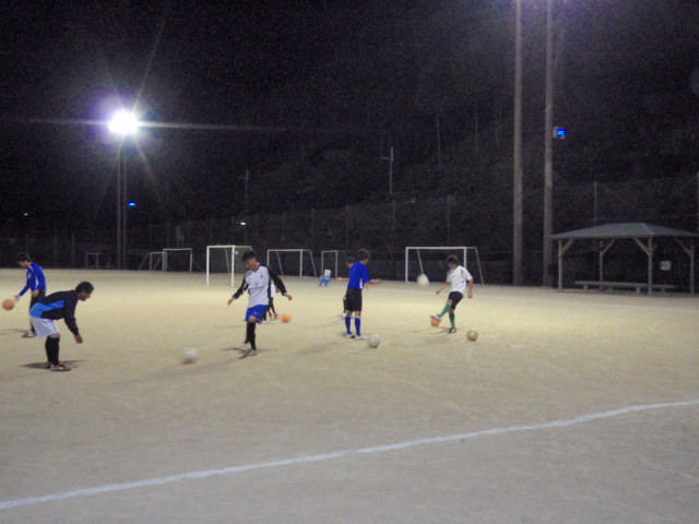 今日は夜のなると非常に寒さを感じるぐらいの気候でした。少年の練習を終えてからそのままアミーゴの練習に合流したのですが、前の日曜日には北播を優勝する為に大事な勝ち点を取れなかった事で、今日からまた『一』からの出直しだと自分の中で思っていました。若手の中には、負けなかった事で満足している様子も見受けられた。確かに負けに等しい内容の中でどうにか分けたのは、価値があるとしても勝たないといけない相手に勝てなかったのは、自分の中では負けに等しい引き分けです。それだけにもう必死になって残りを勝たないと先がないわけで、その為には全員が目標意識をもう一度強く持たないといけないと思っていました。