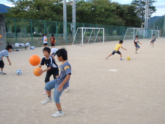 今日も6年生、5年生、4年生でそれぞれにチームを作ってもらってお互いの学年を2つのチームにしてやりました(%笑う男%)(%左足%)(%右足%)