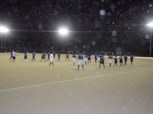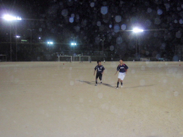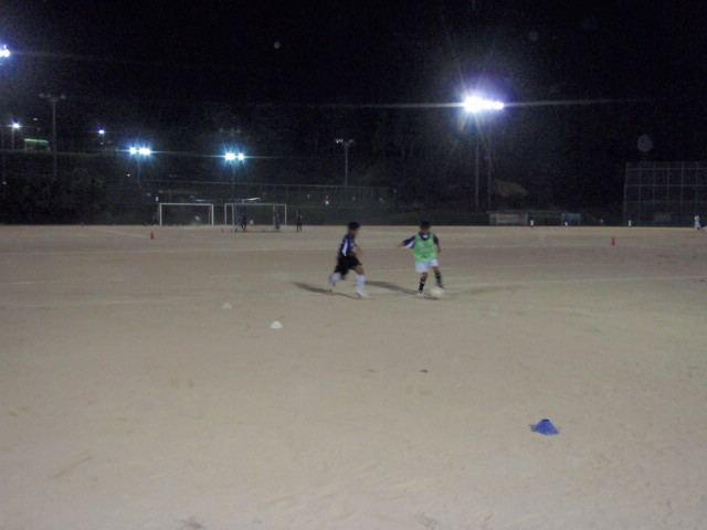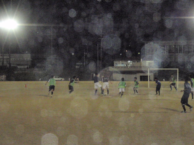 夜になると一段と空気が冷たくなってきましたが、ファルコも元気に練習を行ないました(%笑う男%) 今日はAチームは市位監督と今中コーチがスモールゲーム(1対1、2対2)を中心にやっていました(%笑う男%) 横目でしか見れなかったので内容は分かりませんが、声はかなり出ていたように思います(%笑う男%) Bチームはコーチが見るようにして、今日は最初に『Bチームがなってほしい選手像』を伝えました。こういう選手になってほしいと練習を考えたりしているので、みんなもそこを目指してがんばってほしい、と。そういう事を伝えた上で1対1を中心にしたメニューをやっていきました(%笑う男%)