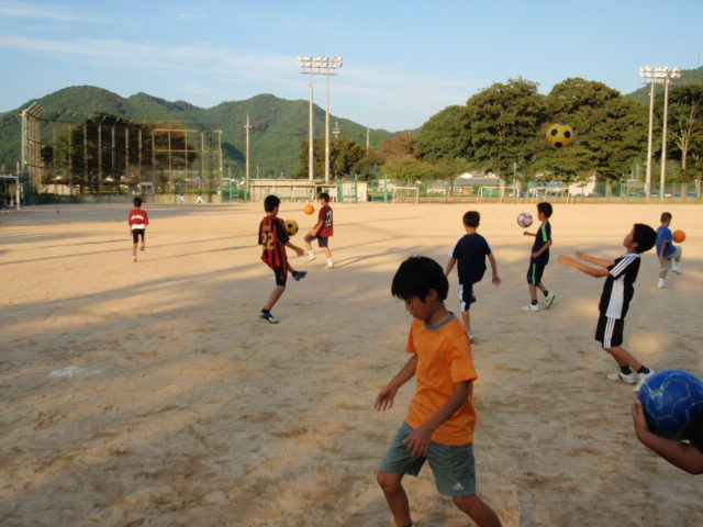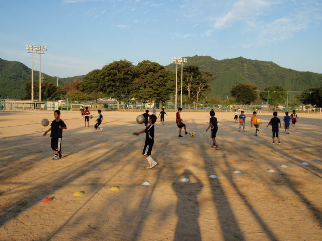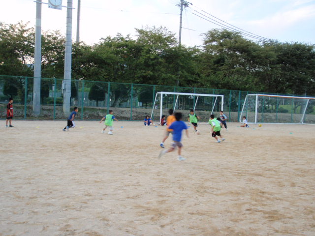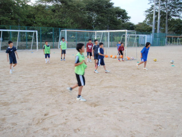 その後はまたすぐにゲームをしました(%笑う男%) 前回は足を蹴る、蹴られるという事が一生懸命なプレーの中で起こってしまったので、すね当てをなるべく持ってくるように言っていたのですが、今日はそれを行動に移してくれた子はほとんどいませんでした・・・。もちろん自己管理の部分もあって、自分で判断すれば良いのですが、自分自身を守る為の努力も出来る範囲でやってほしいと思います。