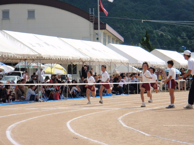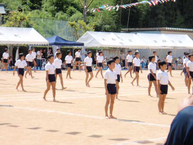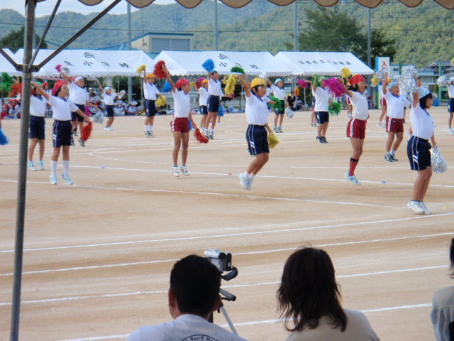 着いた時に夏稀ちゃんが自分に気付いて声を掛けてくれました(%笑う女%)(%音符2%) 難波くんの存在もコーチは気付いたのですが、難波くんはこちらに気付いたでしょうか???泉小学校は見る位置から競技する位置までの距離が遠くてなかなか子供と接する事が出来なかったのですが、がんばっている姿はしっかりと見させてもらいました(%笑う男%) 最初は夏稀ちゃんのダンスがあって、イキイキとがんばる姿を見させてもらいました(%ニコ男%) その後は騎馬戦があり、こちらは白熱した対戦を見させてもらいました(%怒る男%)(%左足%)(%右足%)