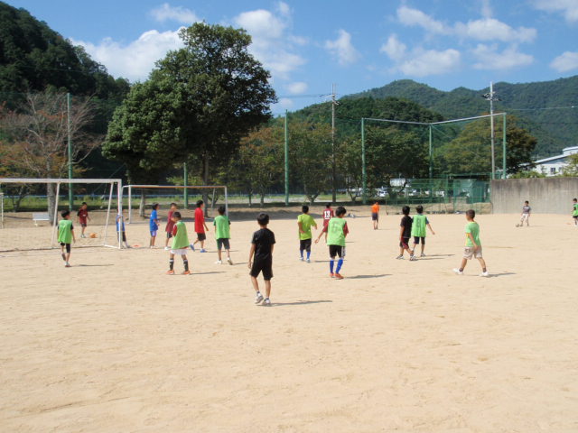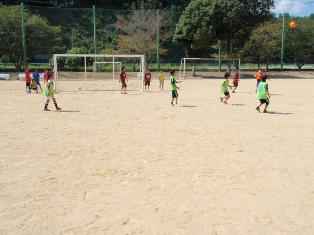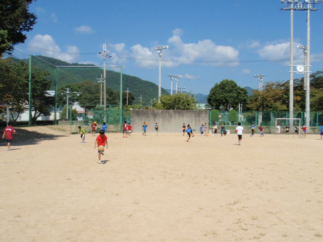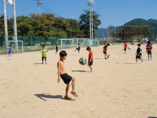 今日は暑かったけど、各自が本当に楽しそうにサッカーをしてくれる姿は印象的でした(%笑う男%)(%音符2%) なかなか太鼓の練習や運動会の練習で来れない子もいたけど、こうやって今日みたいな時間が取れて、そこに集まってくれたのはうれしく思う(%笑う男%) みんなの元気な顔を見れた事もそうだし、がんばってくれている姿勢を見れたのもうれしかった(%ニコ男%) また来週からも太鼓の練習とかで来れない子が出るだろうけど、それが終わったらまた元気な顔を見せてほしいと思います(%笑う男%)(%星%)