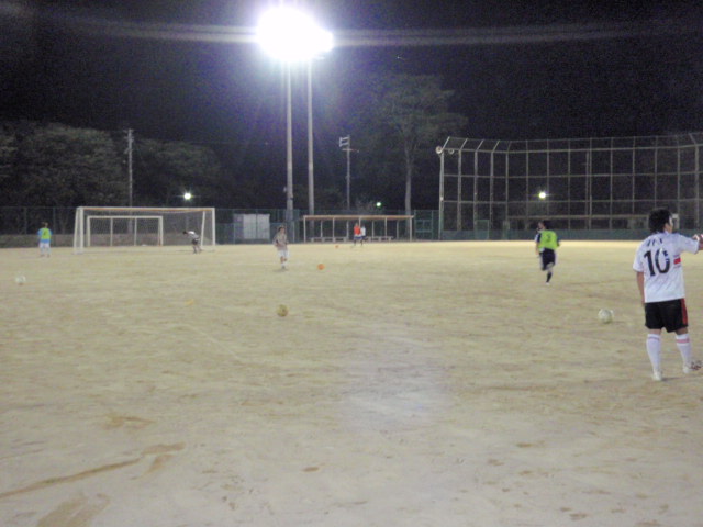 その後はシュートでした(%笑う男%) 今日は珍しく(?!)試合前の練習が軽い調整程度でした(%ニヤ男%) いつもは試合前でもしんどいメニューだったのですが、今日は軽めだったので、楽ではあったのですがシュートに関しては相変わらずキーパーの宏輝くんが、自分のシュートは絶対に止めるという気迫を持ってやってくれたおかげで、今日もシュートはほとんど入りませんでした(%ショボ男%) 狙った場所に狙った弾道で蹴れないのは結局は技術がないのですが、もうちょっと確実に入れられるようにしないと試合で悔しい思いをするのは嫌だし、もっともっとシュートはうまくなりたいと思う(%痛い男%)