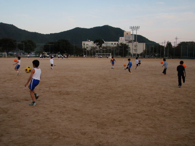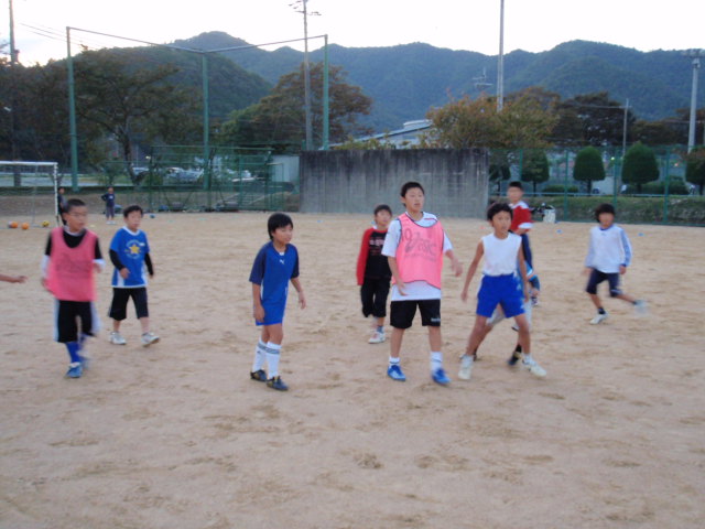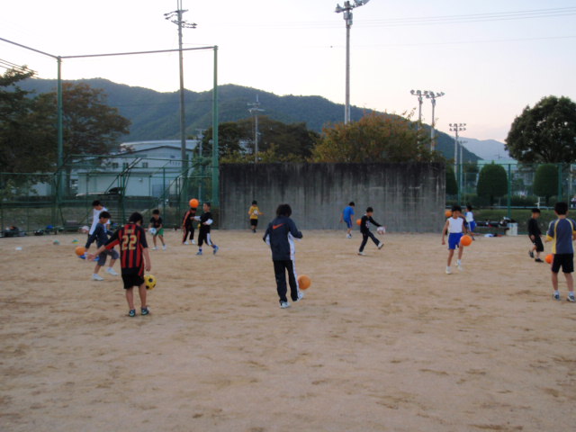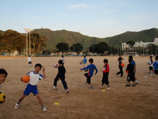 最後はゲームをどんどんやりました(%笑う男%) 今日は4チームに分けて勝ち残りでやりました(%ニコ男%) ここでは毎回がんばってくれているし、勝利を目指してみんなが意欲的にやってくれます(%笑う男%)(%音符2%) ゲームはいつもコーチがあれこれ言う必要は全くありません。上の学年に遠慮だけしないで自分でどんどんプレーする勇気だけ持ってほしいと4,5年生には思うぐらいですね(%笑う男%) パスと言われたからパスをしていたら自分の成果は残りません。自分がパスしたいからパスをする、そういう意志をしっかりと持った選手になってほしいと思います(%笑う男%)