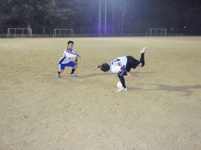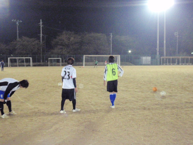 今日も夜はだいぶ冷え込んだ中で、アミーゴの練習を行なう中には手袋まで着用してくる人までいました(%ショック男%) かと思えば最初から半袖、半パンの○橋くんなど、元気いっぱいの選手もいたりとかなり極端でした(笑)