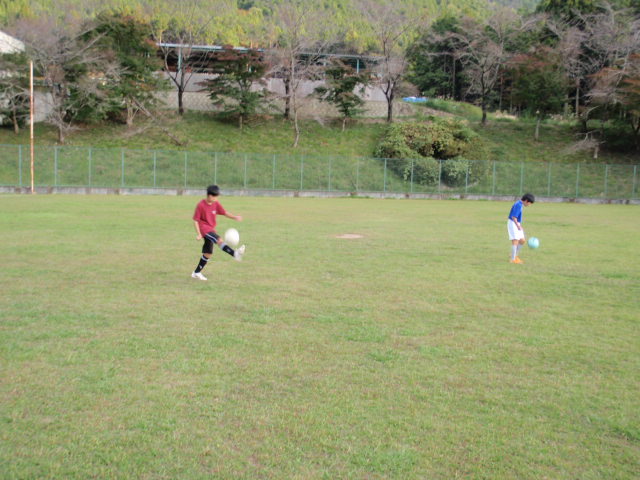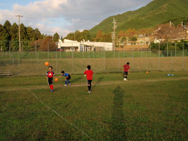 今日は加美スクールでした(%笑う男%) 今日は午前はすっきりとしない天気でしたが、午後は気持ちの良い秋晴れになったのでスクールの時間も非常にやりやすい環境が整いました(%笑う男%) 今日も全員が揃ってからリフティングで10回パスをつなぐ挑戦をしてもらったのですが、4年生が段々と成長してきたのが目に見えるぐらいになってきたので、その成果がそのまま出て簡単に7,8回をいけるようになってきました!!ダイレクトで適当に上げていたのと違って、きちんとファーストトラップが出来るようになってきたのはかなり大きな進歩ですね(%笑う男%)(%音符2%)