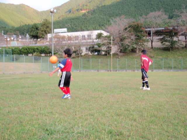 その後は30mドリブルをしました(%笑う男%) ここでは6年生の森野くんと篤生くんの2人が非常に速くうまいドリブルを披露してくれました(%音符2%) ボールが足についているかのようなしっかりと足元におさめたまま、スピードも保ってドリブルするというのは非常に技術の高い証拠です(%笑う男%)(%音符1%) 4年生もこういう良い手本が目の前にいるので参考にしてがんばればきっと自分達も6年生になって同じような事が出来るので、がんばってほしいと思います(%笑う男%)(%星%)