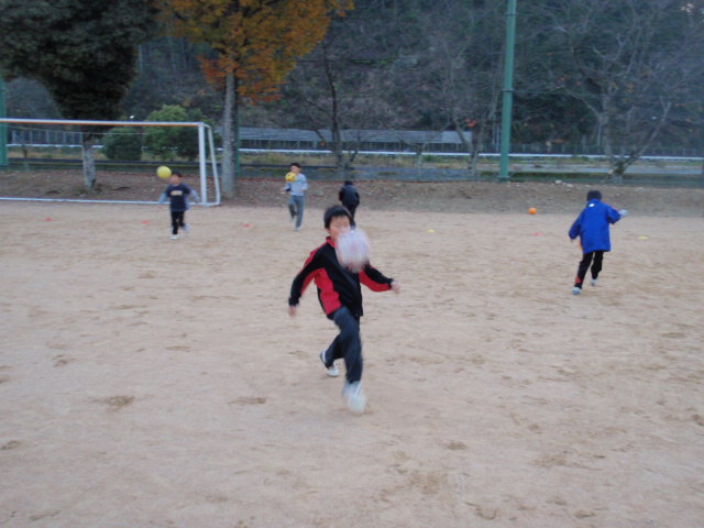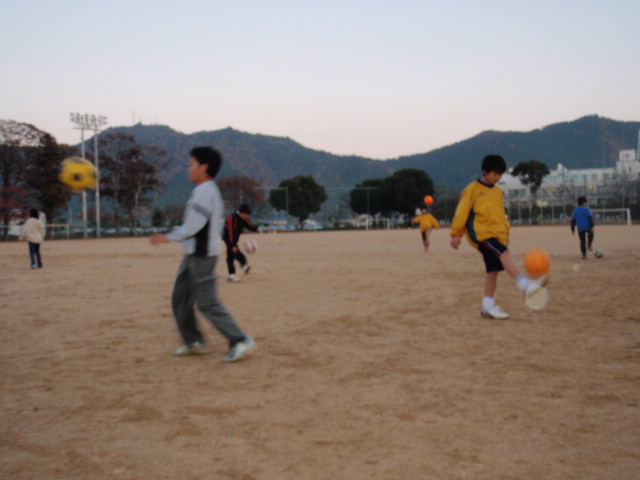 最初は前に進むリフティングをやりました(%笑う男%) なかなか記録を更新出来なくなっている中で、木原 悠助くんだけが45m→50mに伸ばしました(%笑う男%)(%音符2%) 最近は5年生が非常に伸びている傾向が強く、4年生もがんばっているのですがうまいかない日が多いみたいです(%涙%) でも、そういう日もがんばりを続けていればきっと我慢の時を越えて成果が出てくるので、諦めずにがんばってほしいと思います(%笑う男%)