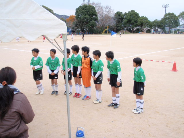 まずは西脇ジュニアの試合からスタートだったので、自分は副審をしてサポート(%ニコ男%) 相手は同じ西脇の比延だったのもあって、同じ西脇地区には負けたくないと子供達も意気込んでくれていたので気持ちの入ったプレーが序盤から多く出ていたし、前半から得意の形で得点を重ねると後半も安定した試合が出来ていたし、一人一人ががんばってプレーしていたのもあって、最初の試合は見事に勝利しました(%笑う男%)