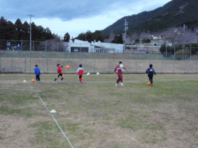 今日もいつもの5名は元気いっぱいだったのですが、今日から5年生の井上 大輝くんが参加をしてくれました(%笑う男%) 井上くんは多可トレセンにも入っていて非常に上手でコーチもビックリしていた選手の一人だったのですが、その井上くんのお父さんとトレセンの練習の時に話をしているとリフティングとかが苦手という事で、スクールに興味を持ってくださったらしく、今日から参加をしてくれたので一緒にがんばる事となりました(%笑う男%) 苦手な部分をがんばって良くしていこうという前向きな入部はありがたい事だし、これからまた一緒にがんばっていきたいと思います(%笑う男%)(%音符2%)(%音符2%)
