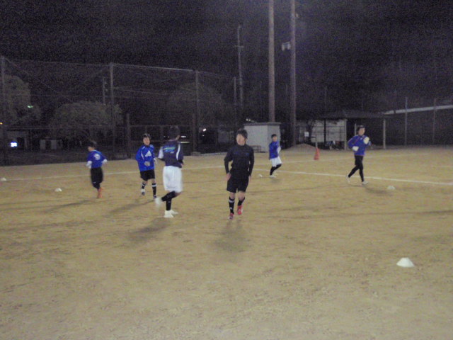 今日は夜になると一段と冷えましたが、練習は元気に行ないました(%笑う男%)(%音符1%) 今日は今中コーチと市位監督が用事で来れなかったので自分一人で担当する事になっていたので練習前には主将の近澤くんと副主将の玉田くんを呼んで今日の練習メニューの意図を理解してもらいました。そして、それを中でみんなに伝えてほしいと言いました。選手同士でなるべくコミュニケーションをとってもらおうと思っていたからです(%笑う男%)