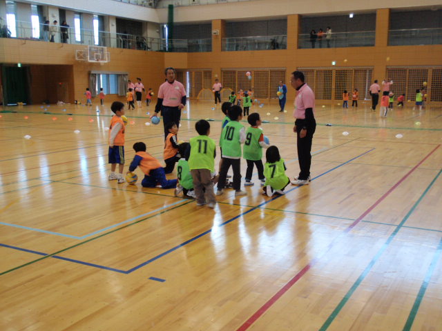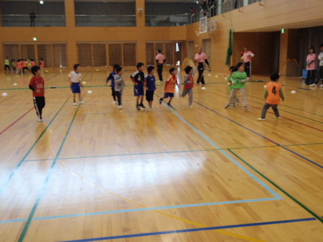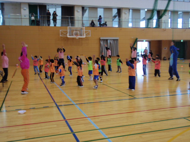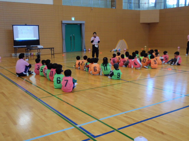 まずは、最初にキッズビクスからスタートしました(%笑う男%)(%笑う女%)(%音符2%) 曲が流れて合わせていくのですが、いきなりは動作も分からないので始めは口で動作を説明してくださいました(%ニコ男%) この時も、子供に分かりやすい言葉を使って説明してくださってのでみんなも理解しやすかったと思います!!最後に講師の方々の話にもあったのですが、このキッズビクスは前回10月の兵庫県サッカーデーの時に一緒にさせてもらったのですが、子供達には難しいのもあってあまり積極的にやっている様子が見れなかった印象が強かったので今回も不安があったりしたのですが・・・・こちらの地域の子供達はとても素直ですごく覚えるのも早かった、と評価していただいたようにみんなは早く覚えてやれていたと思います(%笑う男%)(%音符2%)