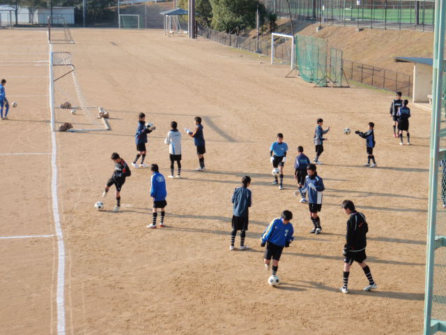 ダッシュを多めに入れてしっかりと汗をかいてもらったのと、コートを広く使うパス(ロングキック)、動きながらのプレー、センタリングシュートをやってもらいました。最近やっているセンタリングからのシュートはセンタリングする側と合わせる側の意図がだいぶ合ってきているので、実戦でそれが出る事を期待しながらやりました(%笑う男%)