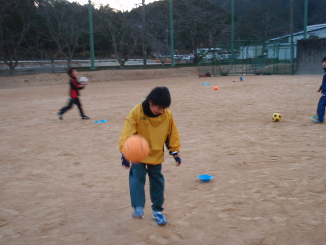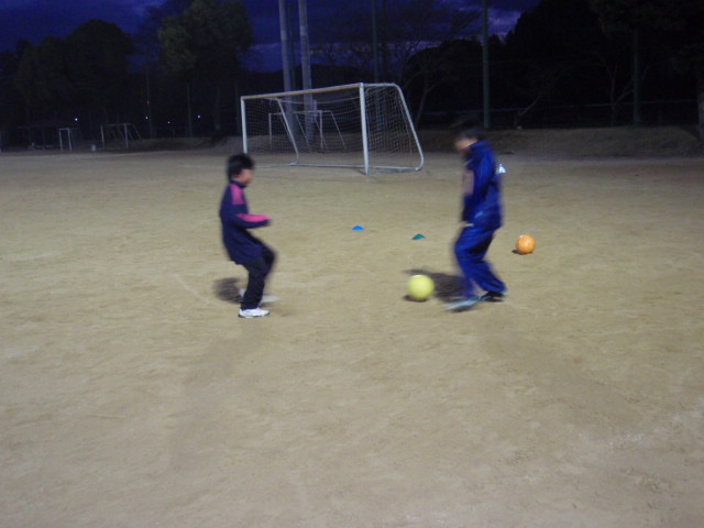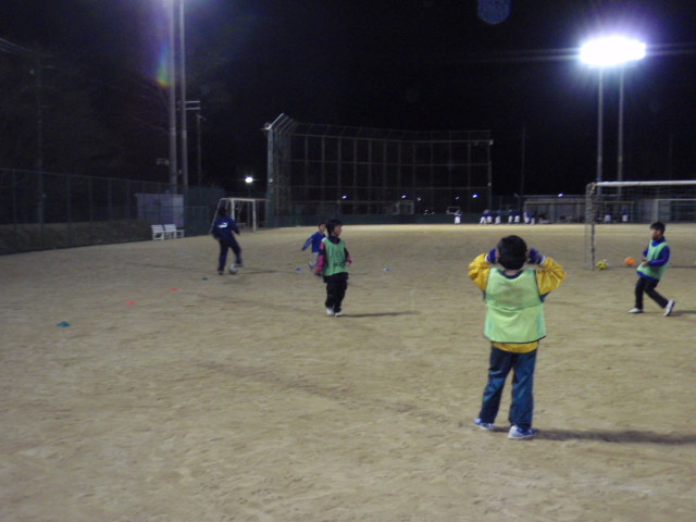 さすがに夕方以降はよく冷え込むようになってきたので、今日も最初はマーカーを拾うリフティングからやってもらいました(%ニヤ男%) 最初はバウンドさせてOKとしたのですが、途中からはリフティングをしながら拾うようにしてもらいました(%笑う男%)(%星%) これは結構技術がいるのですが、ここで一番多くのマーカーを拾えたのが4年生の吉本 圭吾くんでした(%ニコ男%)(%星%) 年末からリフティングでいきなり大ブレイクしてきた圭吾くんがここでも見事なファーストタッチを見せるなど、技術の成長は続いていました(%笑う男%)(%音符2%)