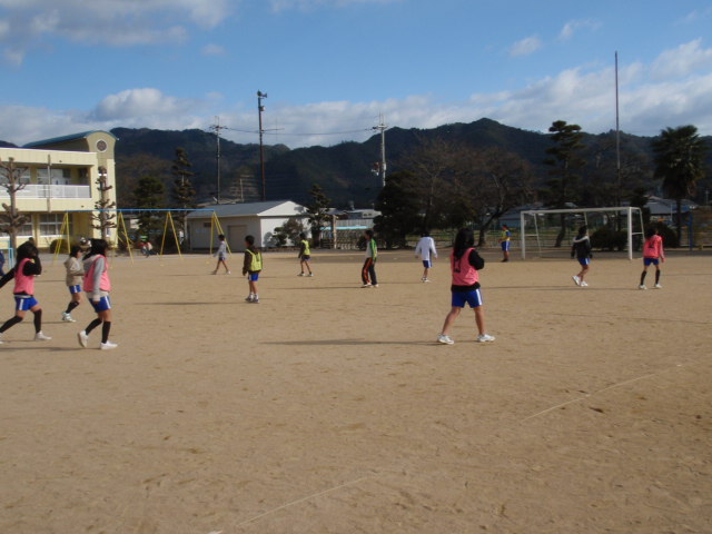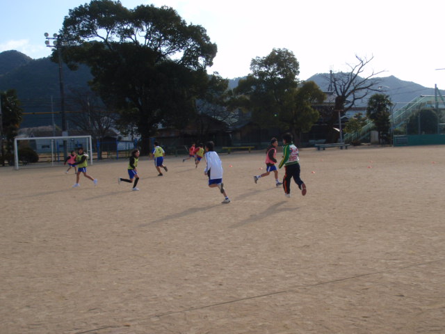今日は初めてでしたが、最初は『寒いし嫌やわぁ〜・・・』って感じの女の子が多かったのですが、5年生も6年生も最後のゲームは男の子よりも積極的でめちゃくちゃ動いていました(%笑う女%)(%星%) 女の子の元気なパワーを感じたし、男の子もサッカーをやっていない子の中でも上手な子はたくさんいました(%笑う男%)(%星%)