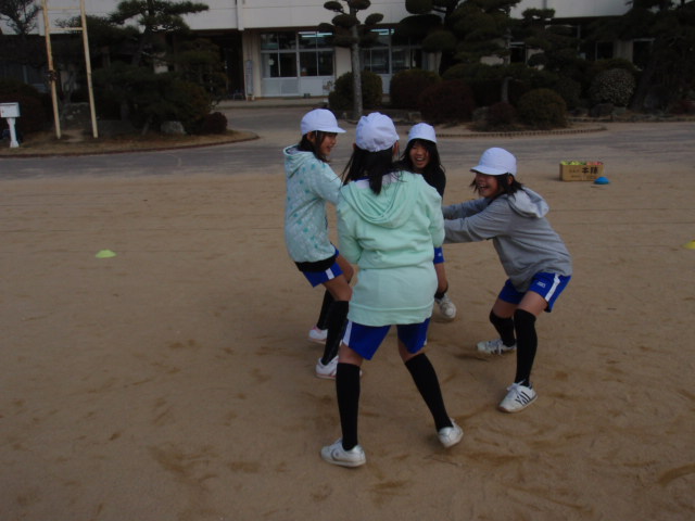 これは5,6年生共に盛り上がったゲームだったし、誰もサボれない事で自然と動いてくれたし、女の子はキャーキャー(%痛い女%)(%笑う女%)(%痛い女%)(%笑う女%)悲鳴を上げながらやってくれました(%笑う男%) 実はこれも狙いで、大声を出す事も体を温める一つの大きな要素なので、体も動かし、声も出せれば一番良いので、これが出来ていた女の子のほうがしっかりと温まったように思います。男の子は真剣に逃げすぎて黙々とやっていましたので(笑)
