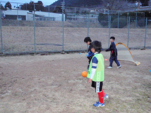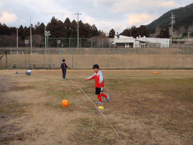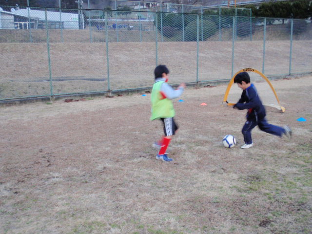 まずは、リフティングしながらマーカーを拾うゲームでしたが、ここでは5年生の井上 大輝くんと4年生の藤本 唯人くんが非常に慣れてきた感じで、1枚は確実に取れるようになってきたのですが、2枚という複数になると落とさずに続けないといけないのでだいぶ苦戦をしていましたが、唯人くんは2枚をクリアするなど、最後まで粘ってがんばった成果が出ました(%笑う男%)(%音符2%)