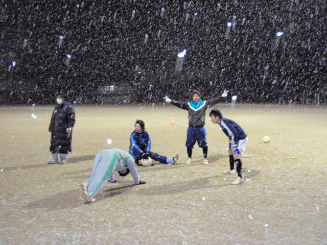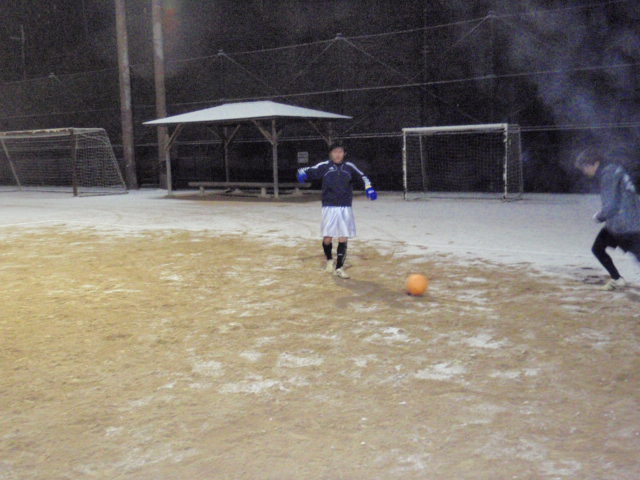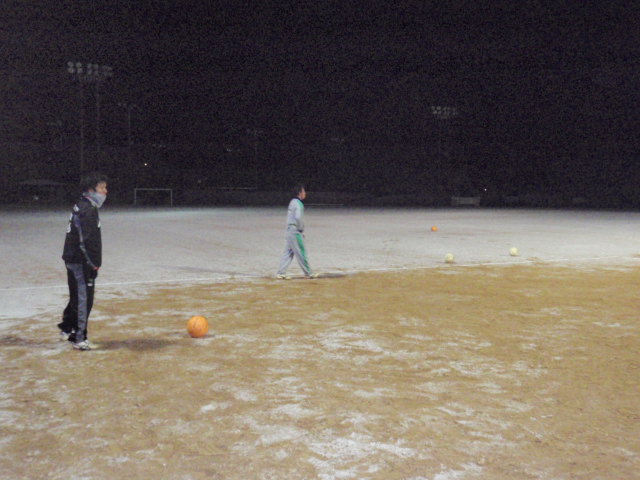 ここまでなるとわざわざ寒さに関しては言うまでもなく(笑)、かなりの寒さでしたが、大橋くんがいつものように(?!)半パンでいきなり練習開始をするので、自分も気持ちだけは若くいこうとハーフパンツで対抗しました(どんな勝負やねん!!(%痛い男%))