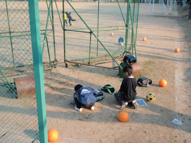 今日もグランドに行くと元気な南小学校の4年生達がいたのですが、その中で一人グランドで宿題を広げてがんばっている子が・・・・・岡くんです(%笑う男%)(%音符2%) 文武両道、勉強もしっかりとやろうという意欲は大事です!!場所がグランドって所がサッカー大好きな岡くんらしい所ですが、何か子供らしいというか思い立ったら行動する微笑ましいシーンでのスタートでした(%笑う男%)(%王冠%)