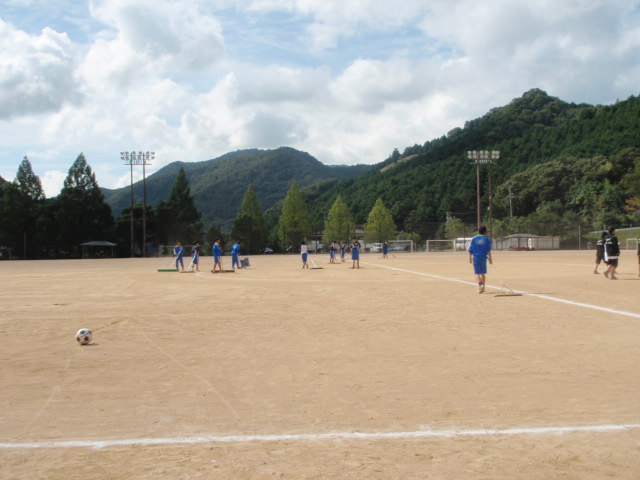 今日も朝から良い天気に恵まれて、交流大会の最終日を迎える事が出来ました(%笑う男%)(%音符2%) 最終日でもある今日をしっかりと締めくくれるようにとサッカー面はもちろん、運営をした側としての責任も果たせるように気合いを入れてがんばりました(%ニコ男%) まずは朝にグランドの設営という事でライン引きや石拾いからやりました(%ニヤ男%) 石はどうしても拾っても拾っても出てくるのですが、少しでも怪我が減ればいいな、と思うしみんなでしっかりと出来る限りの事をやるようにしました。それでも二日間やってきたので準備の要領も良くなっていたので、時間が余ったのですがその時間を見ていて少し疑問を感じたのです・・・。