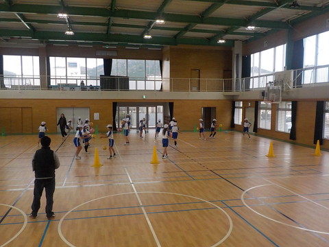 6年生は人数の多い学年でしたし、体が大きいので余計に体育館が狭く感じられましたが、生き生きとがんばる姿は圧巻でした♪コーチもあちこちで体育をさせてもらっているけど、こんなに前向きに、楽しそうにやる学年もそんなにありません!!コーチの授業を楽しみにしてくれていた話を聞いたのもうれしかったけど、こうやって実際に本当に楽しそうな空気の中でやってくれた事はコーチにとってもありがたい事でした。