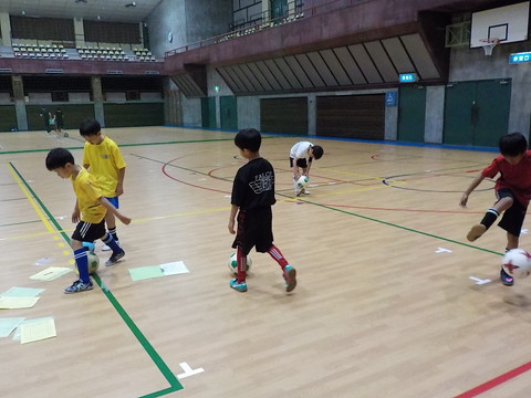 その上でようやく出た答えが『ボールを大切に扱う』事です。そうなんです!うまい人ってボールが足元から離れない・・・ボールと友達って言葉があるような感じ。体をうまく使えて、柔らかく使えて、ボールが離れない訳です。そうなる為にはボール(道具)を大切に出来ない人間が始まらないよ、って事でスクール前に好き放題に、バラバラに、めちゃくちゃに(笑)、置いた荷物から整頓し、開始しました。