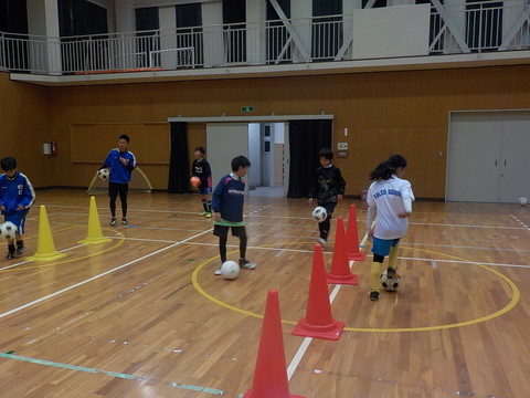 自分のやりたい事をどれだけ相手のいる中で出来るのか?を色々試してもらいました。さらには高学年には途中に『ドリブルの中でさらに意識を細かく分ける』事を考えてもらいました。