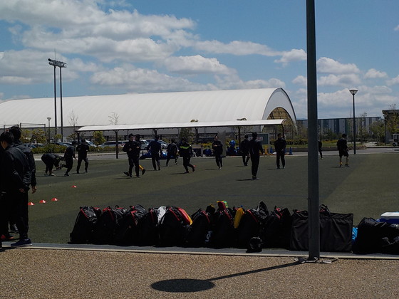 そこから天気が怪しくて、何度も雨が降ったりやんだりしている中でしたが、グランドはまだ水が染みているけど、浮いていないような状態だったので各自の刺激を受けたものをトレーニングで、自分に落とし込む事をやってもらいました!!