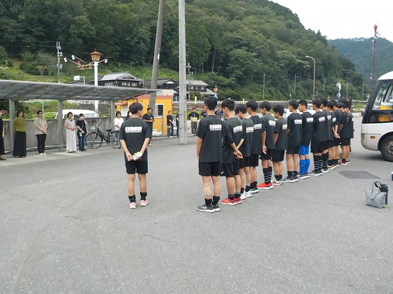 直前まで体調不良者などもいましたが、当日は元気に復活してくれてたので揃って参加する事が出来ました。コロナの影響もあり、実に3年ぶりの遠征に出る事が出来るという事もあり、子供はもちろん保護者の方からしても楽しみと寂しさもあったかと思います。当日、平日の早朝にも関わらず多くの方々に見送りをしていただき、元気に出発!!