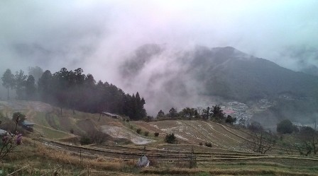 「霧の里」と呼ばれるくらい幻想的な景色を醸し出す美しい高原(たかはら)。雲の中に居るかのように立ち込める霧も、やがて棚田の向こうに消えていきます。