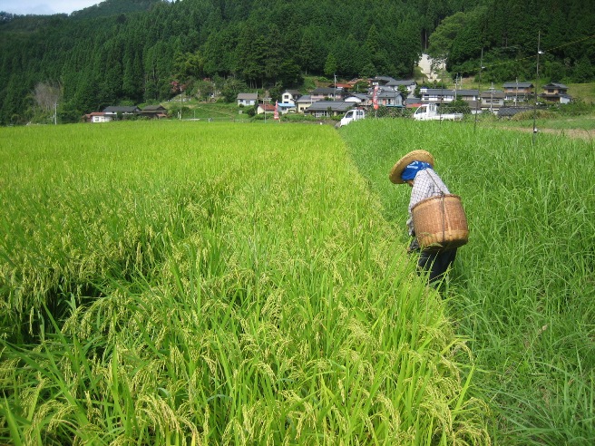 薬王寺米づくり体験の田んぼも米がたわわに実り、頭をたれています(%ニコ男%)