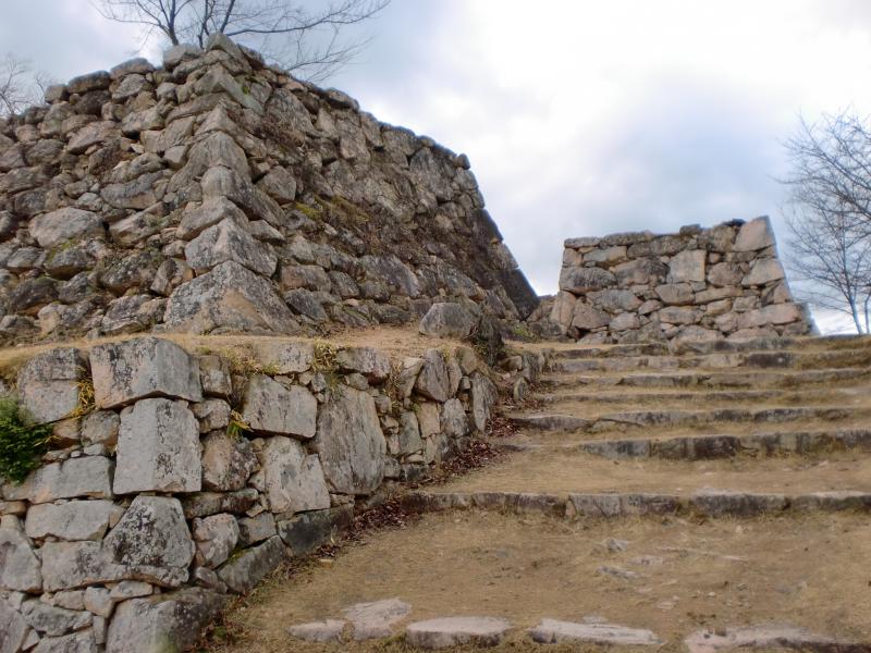 この日は明け方の雨が上がり、だんだん冬型の気圧配置に移りつつあったようで、時折雲の切れ目から太陽が差したり翳ったり、で周りの景色も城跡の石垣も様々な表情を見せてくれました。
