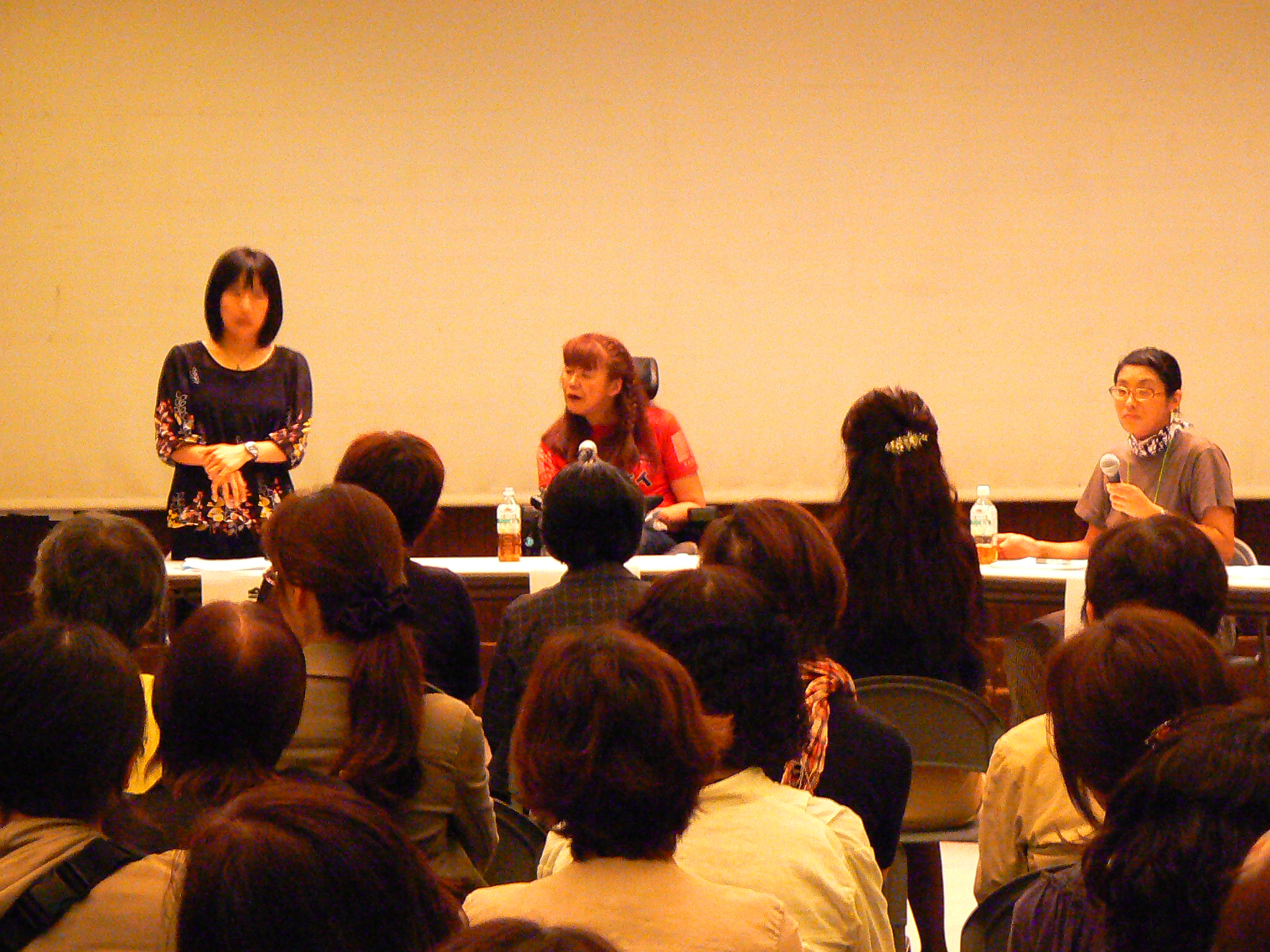 そんな中で3月11日の大震災が起こり、今村さんが被災地に入って取材されていることを知って、元々の「映画でともに生きる社会を」のテーマを変えずに、上映する映画を被災地を記録した映画「架け橋」に変更、講演会をシンポジウムに変更して開催しました。ろう者の置かれている状況だけではなく、様々な障害を持つ人々がどういう状況にあるのか併せてお伝えしたいという思いがあり、もう一人のシンポジストとして古井さんをお招きしました。