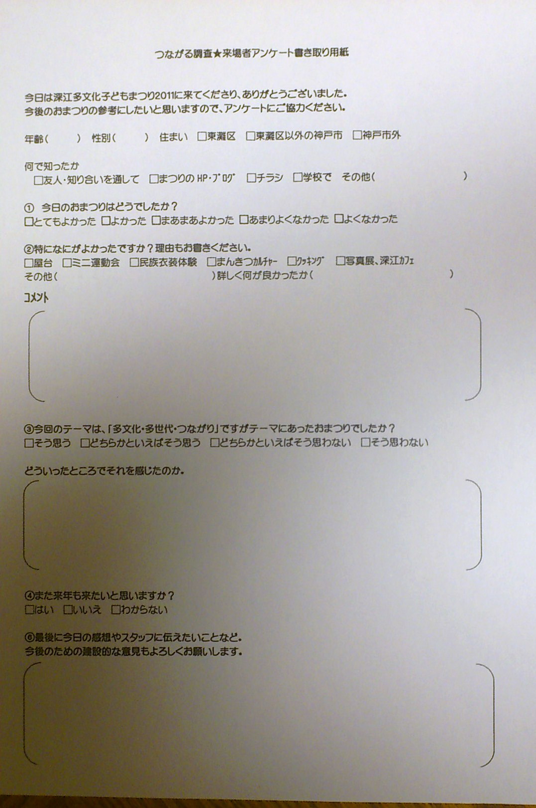 来年の深江多文化子どもまつりがよりよいものにするために、みなさんのアンケートのご協力よろしくお願いします。