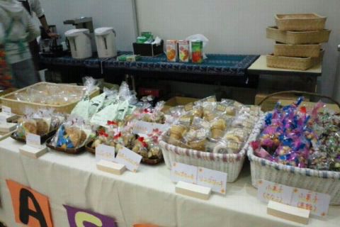 作業所の方が作ってくださったお菓子やドリンク、マグネットを