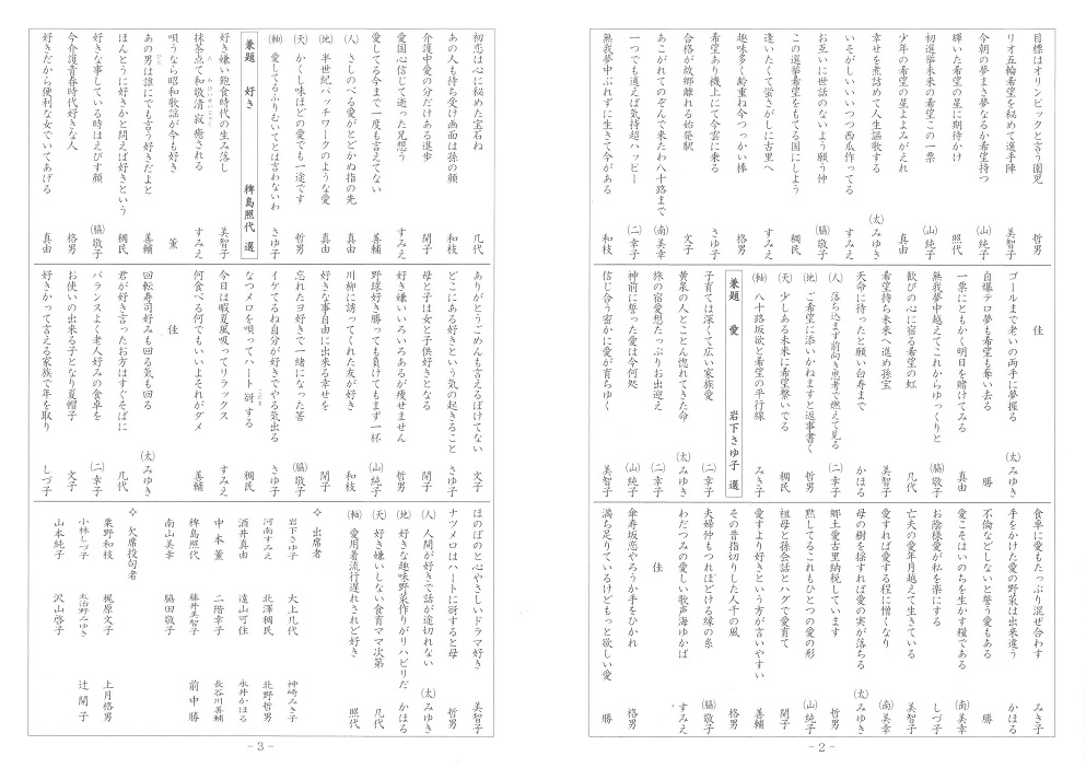 ・粟野和枝 ・梶原文子 ・上月各男 ・小林しず子 ・太治野みゆき ・辻開子