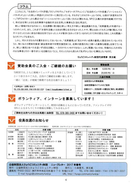 【公益財団法人ひょうごコミュニティ財団 ニューズレター 2017年春号】
