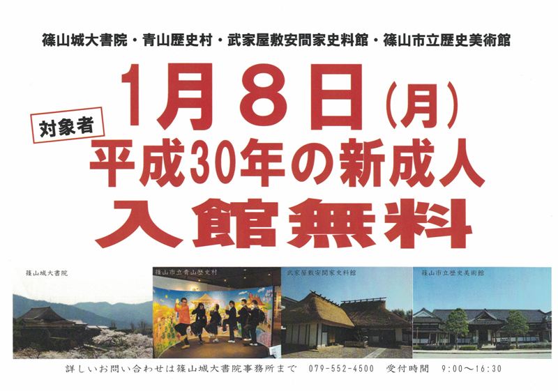 篠山城大書院・青山歴史村・武家屋敷安間家・篠山市立歴史美術館が