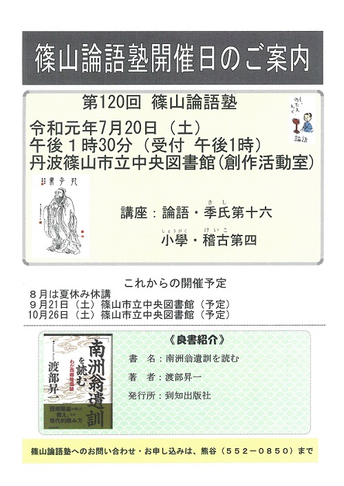 第120回「篠山論語塾」開催日のご案内