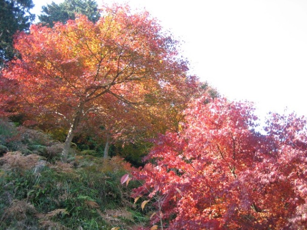 楽音寺の木々がまっ赤に染まっています。(%赤点%)