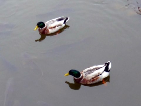 渡り鳥のオシドリ夫婦?が旅に出る前に羽根を休めています。